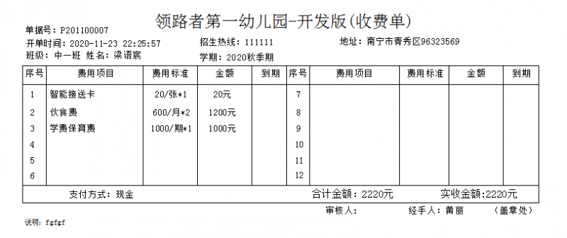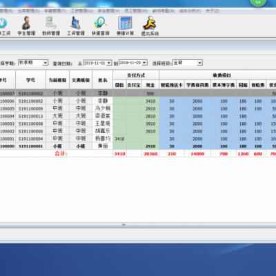 主要就是每天幼儿园发生的各种除学费以外的收入,以及各种支出,实时产生收入支出明细报表